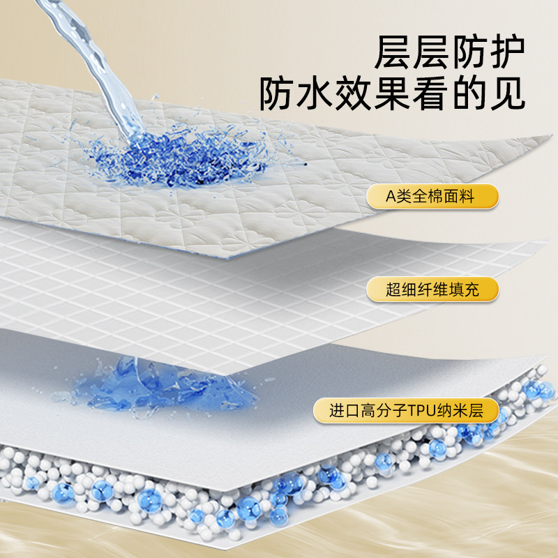 纯棉床笠单件加厚夹棉四季 通用a类高级感防水隔尿全棉床垫保护罩
