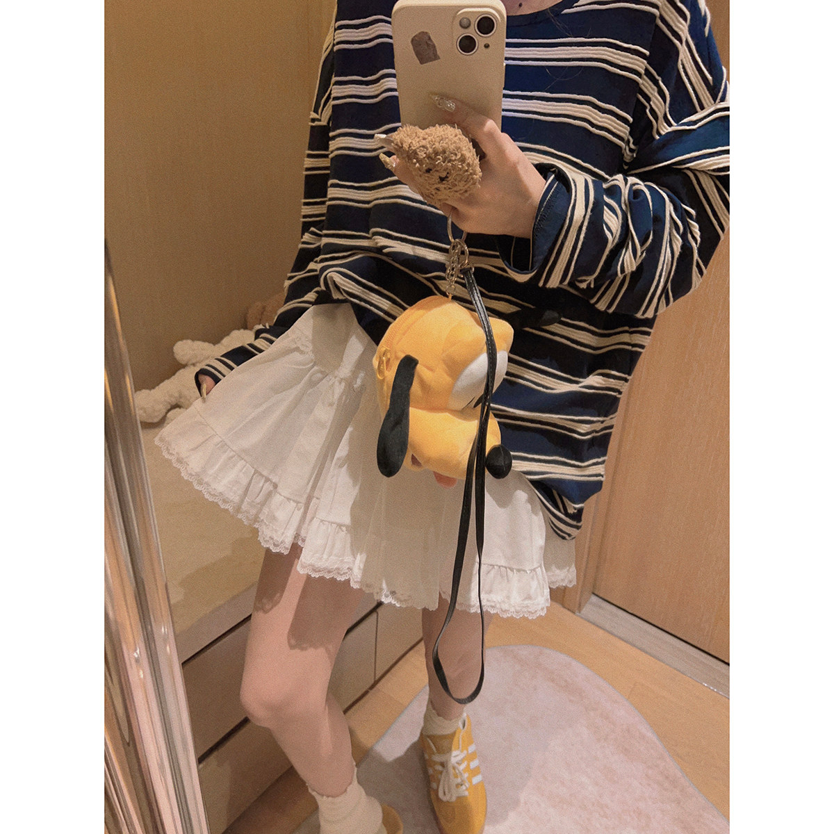 Yukiss 白色蕾丝花边蛋糕半身裙女春韩系小个子宽松舒适短裙A字裙