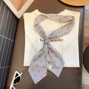 2025新款 复古撞色领带JK风丝巾女发带领巾休闲百搭飘带小围巾 春季