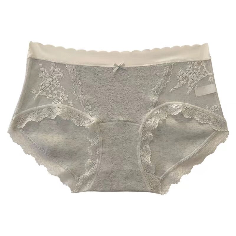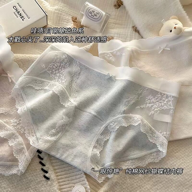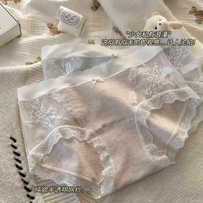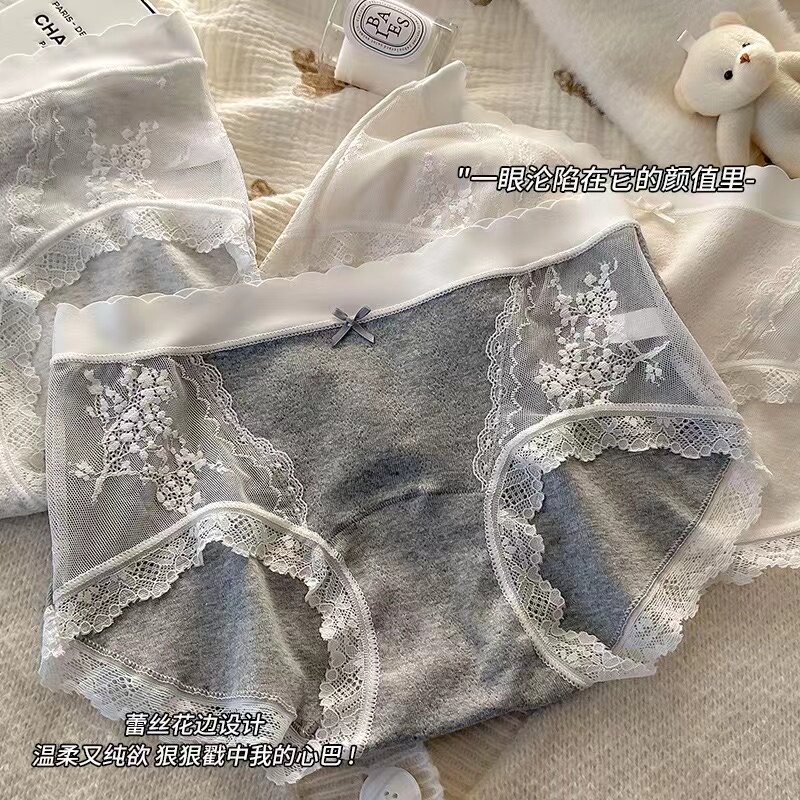 女 三角裤 加长裆女生纯欲纯棉内裤 女士中腰蕾丝原棉A类婴儿棉大码