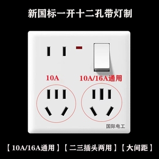 国际电工86型五孔带开关插座面板暗装 家用usb空调16A三孔电源插座