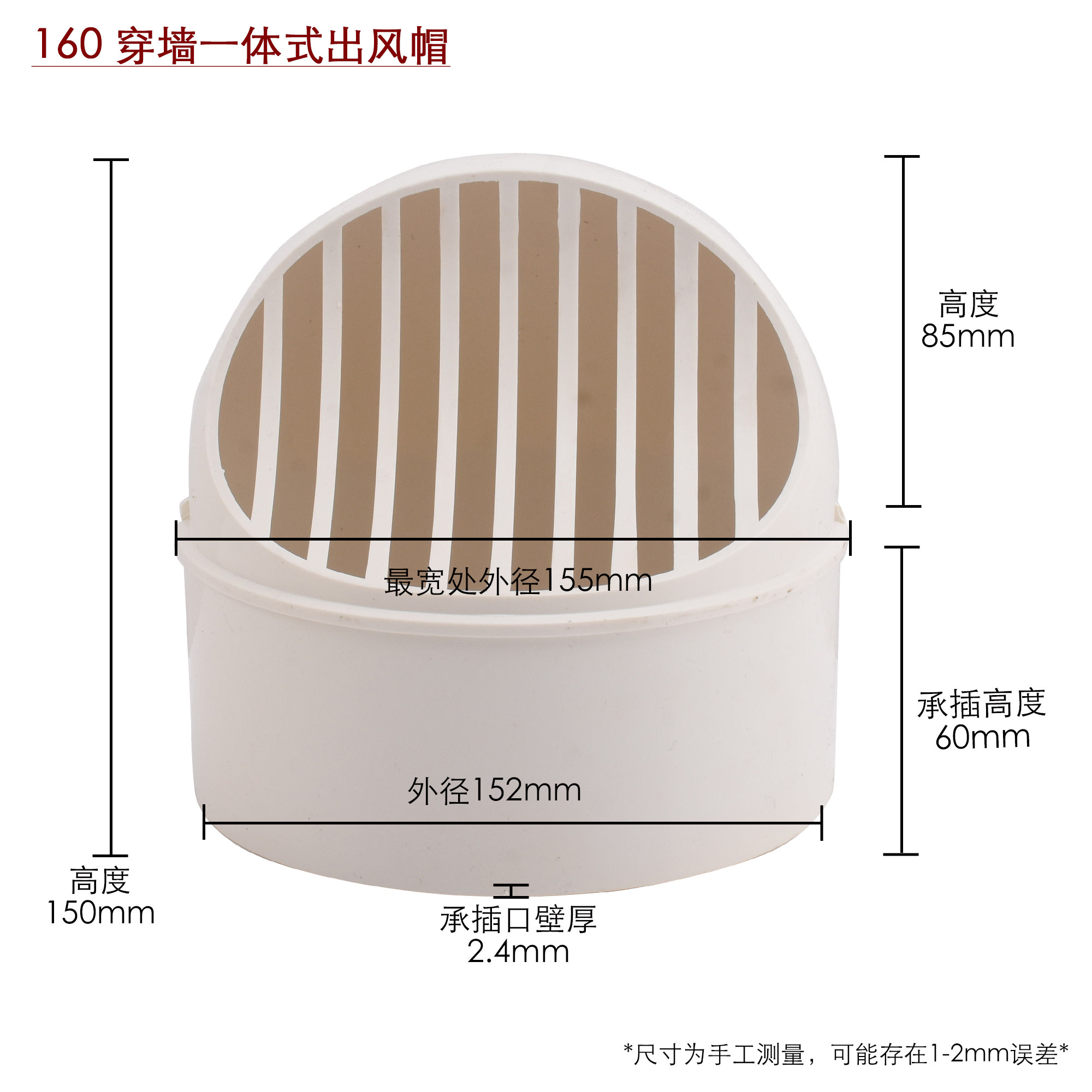 PVC风帽 一体通风口110油烟机160外墙出风口排气防雨罩透气帽塑料