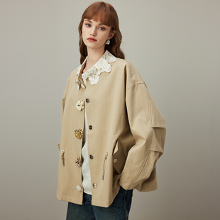 新款 风衣外套女2026年春季 抽绳宽松休闲夹克上衣 纯棉短款 dfvc韩版