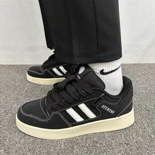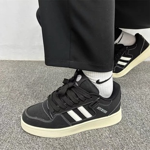 学生百搭运动休闲板鞋 港风男鞋 新款 ins潮2025春季 黑色情侣面包鞋