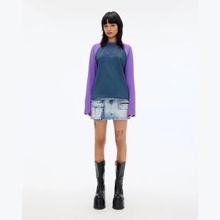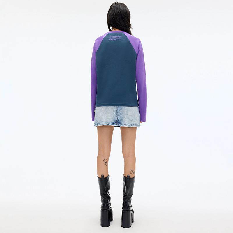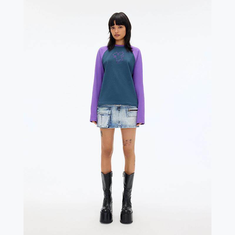 刺绣长袖 复古撞色插肩袖 男女T恤 美式 双头熊家2025春新款