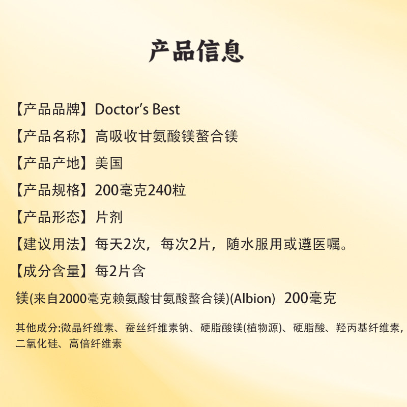 直邮Doctor 240片睡眠情绪生酮 sBest高吸收甘氨酸镁螯合镁100mg