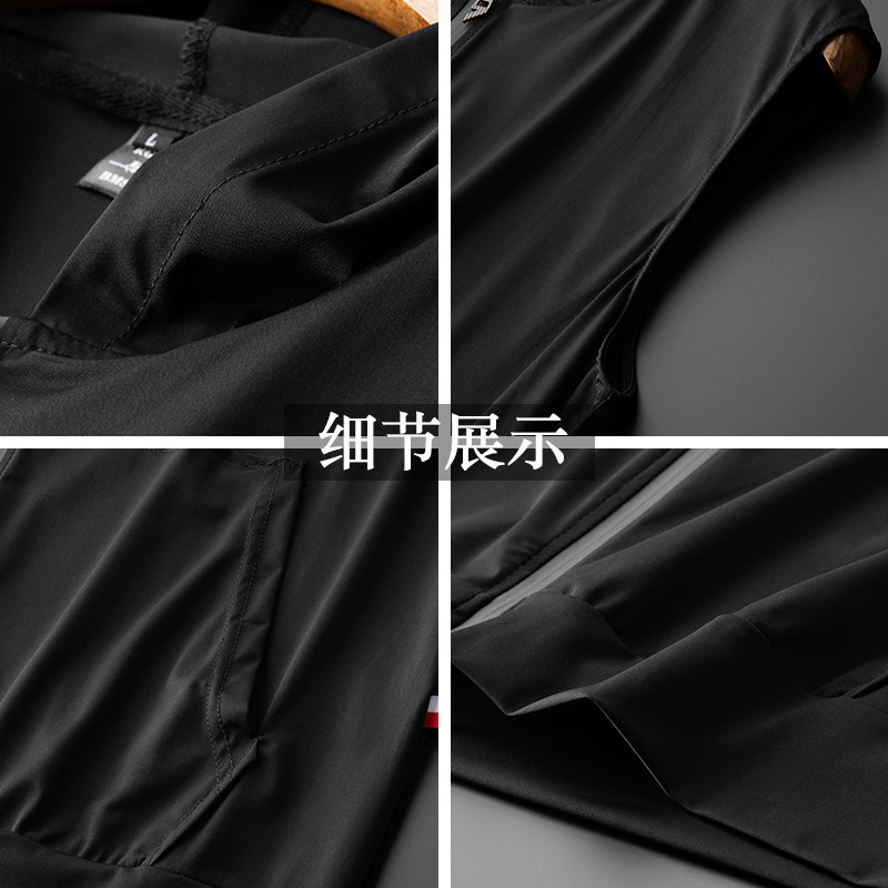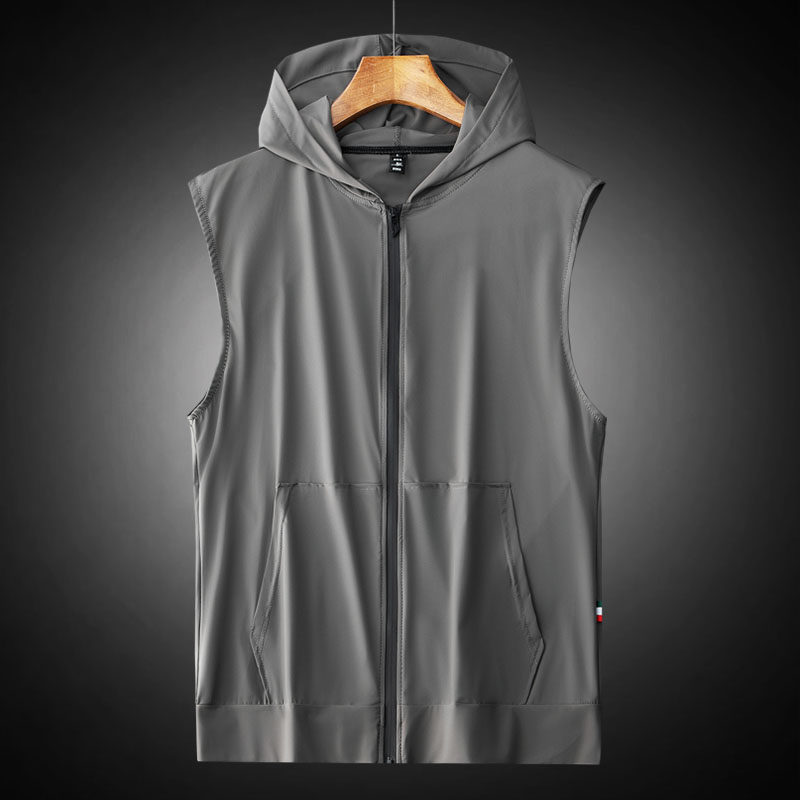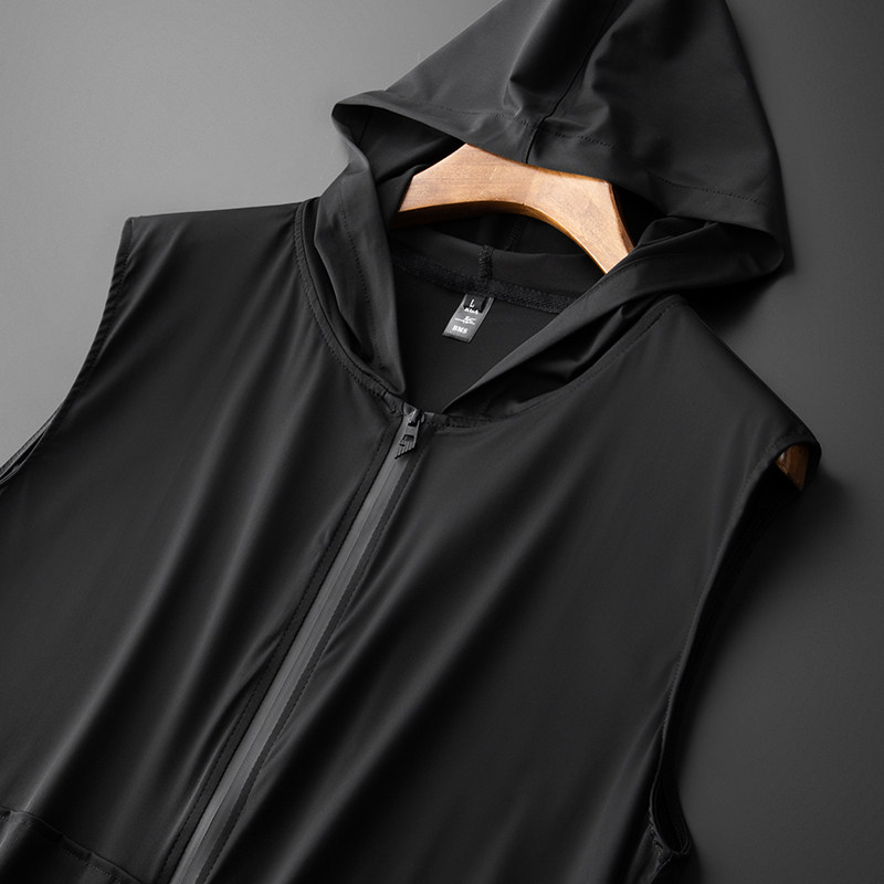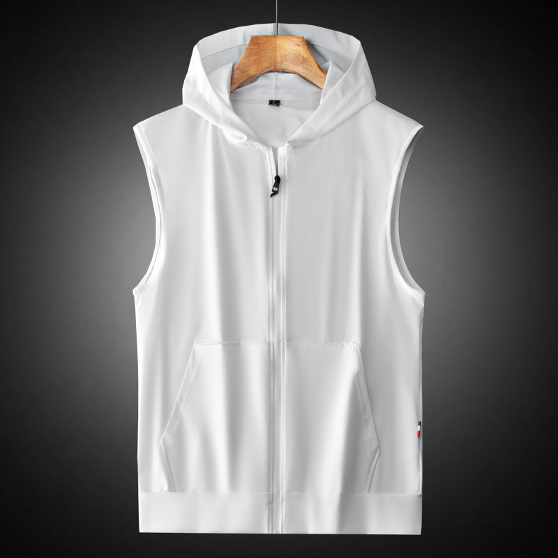 加肥加大码 拉链休闲马甲短袖 潮牌 冰丝背心男连帽t恤开衫 夏季