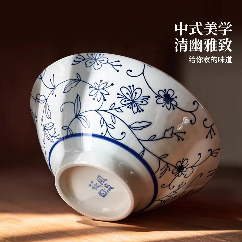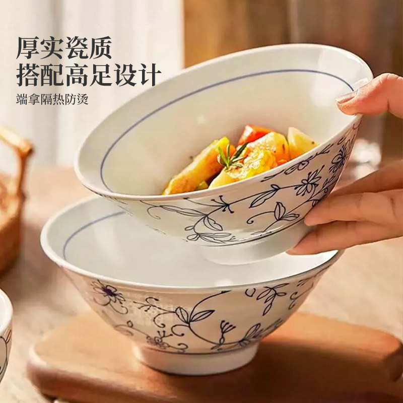 中式 高颜值釉下彩8寸大碗泡面碗大容量汤盆 陶瓷汤碗家用2025新款