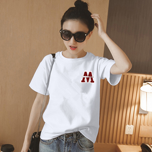 白色宽松纯色半袖 夏季 白体全棉ins风上衣服 t恤女2025新款 纯棉短袖