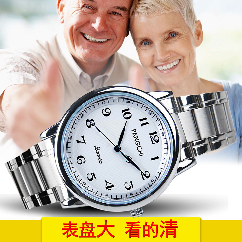 简约数字手表女士2023新款 鹏志钢带老人手表男士 中年老年手表女款