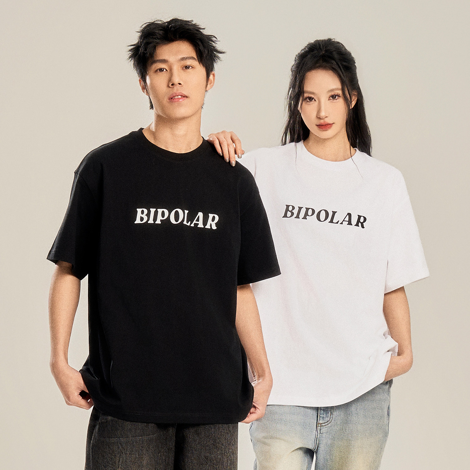 BIPOLAR新胶印短袖 高街复古纯棉上衣国潮牌情侣基础打底 T恤男美式