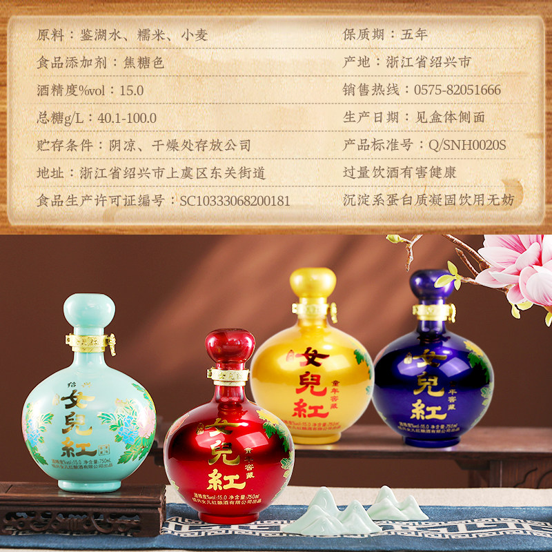 绍兴女儿红黄酒童年窖藏750ML 4瓶整箱礼盒善酿老酒糯米半甜黄酒
