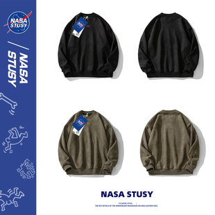 秋冬装 高街2025新款 男宽松情侣潮牌麂皮绒加绒卫衣 STUSY美式 NASA
