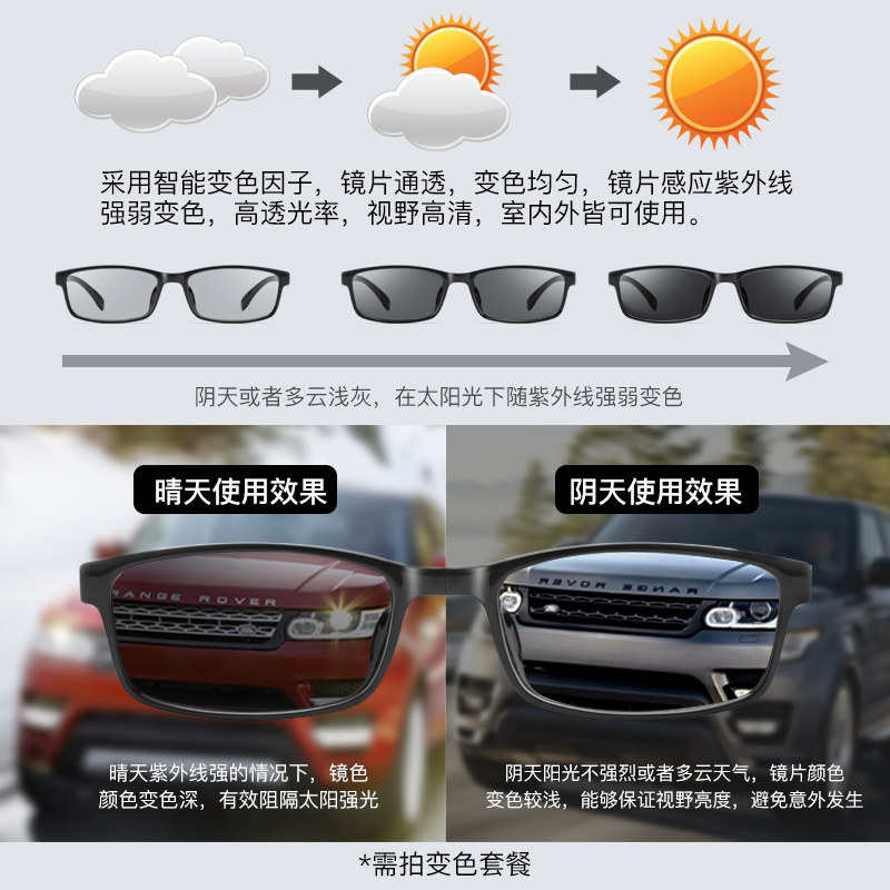 300度全框变色丹阳近视镜 200 黑框近视眼镜男专业网上配度数 100