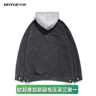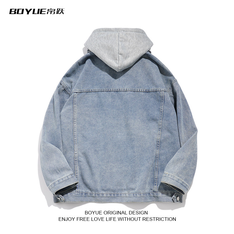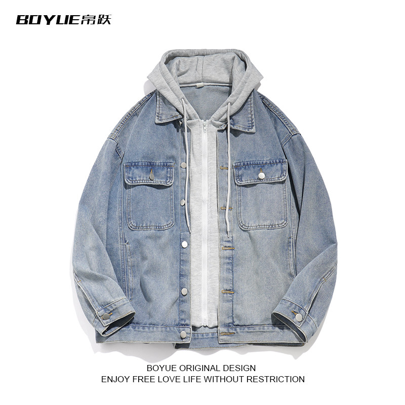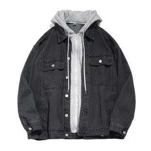 阿于呆秋冬日系假两件水洗连帽牛仔外套男宽松休闲情侣工装 夹克女