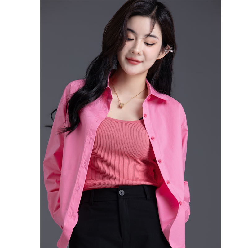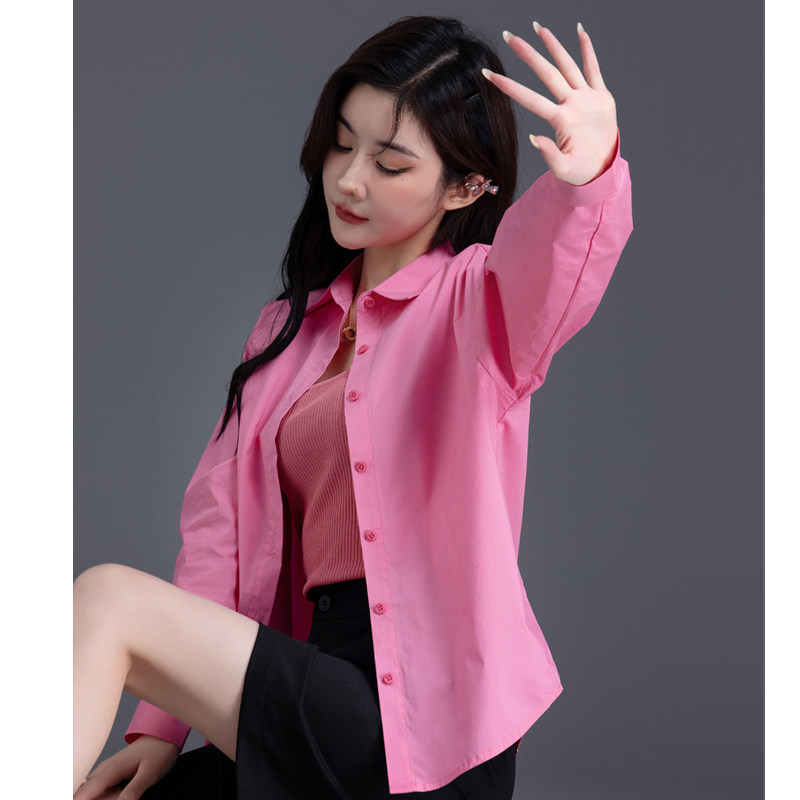 高级设计感宽松外套上衣女士衬衫 小衫 春秋季 粉红色衬衣女2026新款