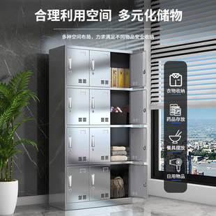 加厚304不锈钢更衣柜储物柜浴室员工多门多层衣柜多格鞋 柜定制