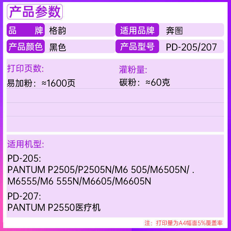 品质M6605N粉盒M6505墨盒P2550医疗机带芯片 M6555N原装 格韵适用pantum奔图m6505n硒鼓p2505n打印机pd205 207