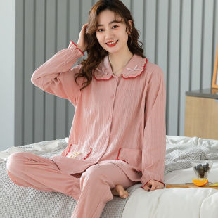 可外穿家居服 冬装 100%纯棉睡衣女春秋学生韩版 宽松中年女装