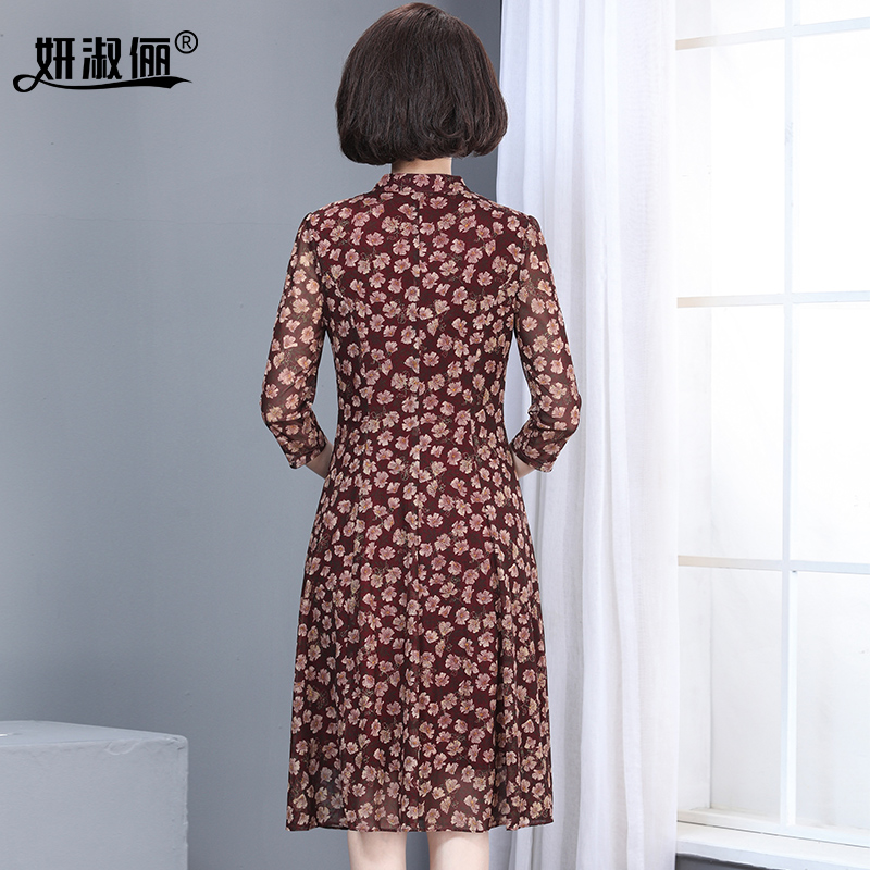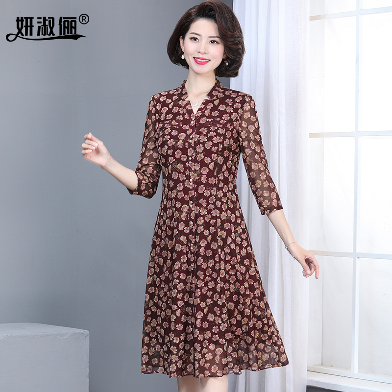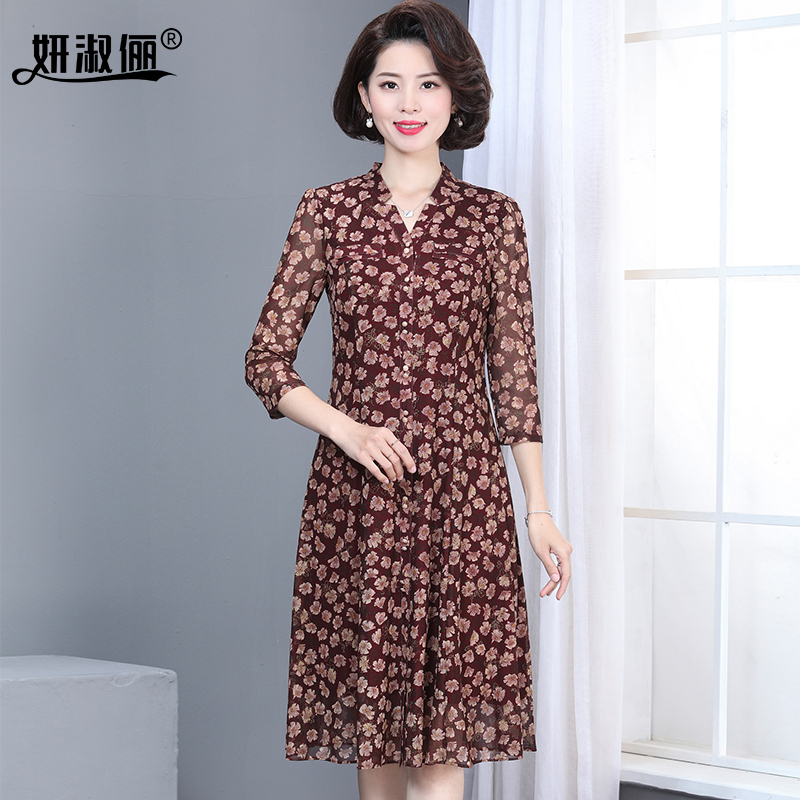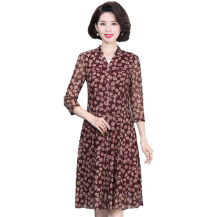 中年妈妈连衣裙夏装 台湾纱洋气老年人女50岁高贵气质碎花裙子 新款