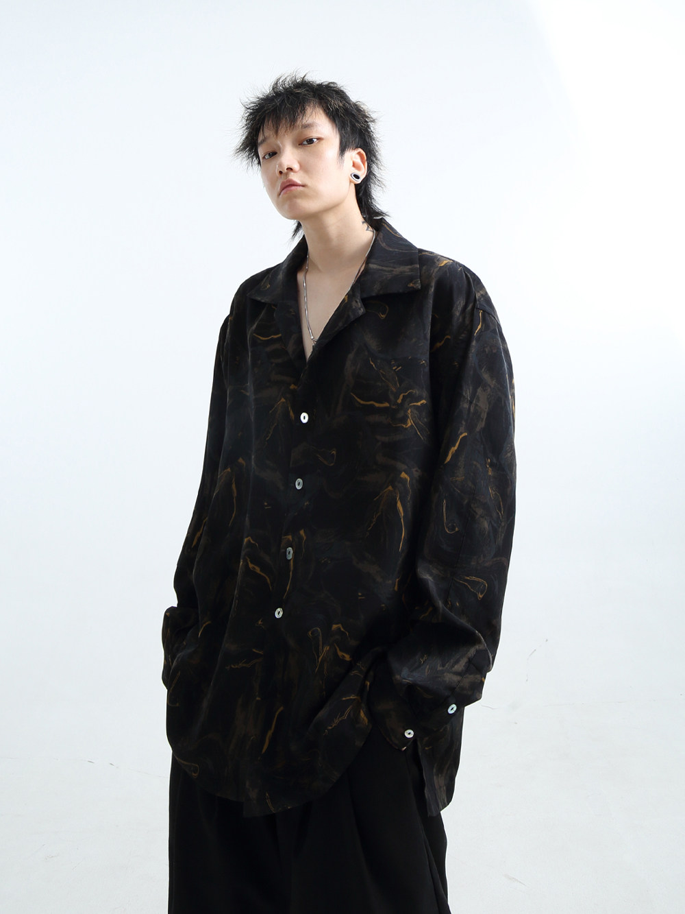 5cm 2025春秋季 FIVECM时尚 男款 宽松休闲上衣 潮流翻领牛仔衬衫