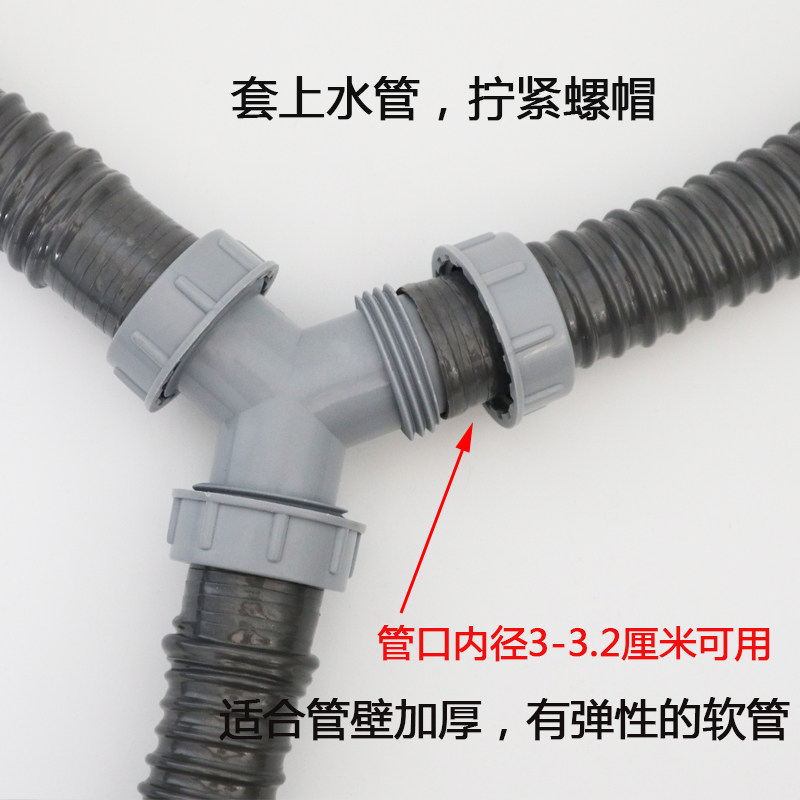下水管三通排水软管接头双洗衣机面盆水槽带螺帽卫浴配件Y型30