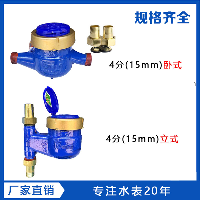 自来水水表家用水旋翼湿式 出租房公寓防倒转 冷水表4分6分水平立式
