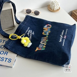 原创自制Thailand牛仔包袋ins韩版 休闲潮酷帆布百搭手提单肩女包