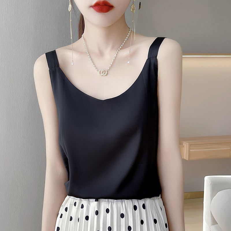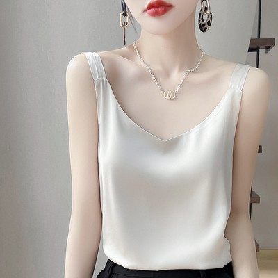 重磅升级真丝吊带女西装 桑蚕丝锻面宽肩带背心 内搭V领显瘦夏季