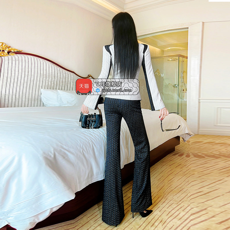 OL女神范高级职业套装 两件套秋新款 女 外套垂顺喇叭裤 VJE正装