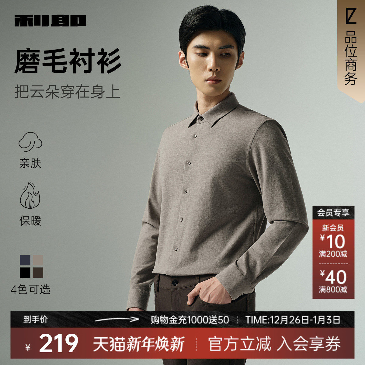 男士 春秋季 新款 长袖 利郎官方衬衫 商务休闲男装 衬衣男款 质感磨毛