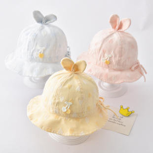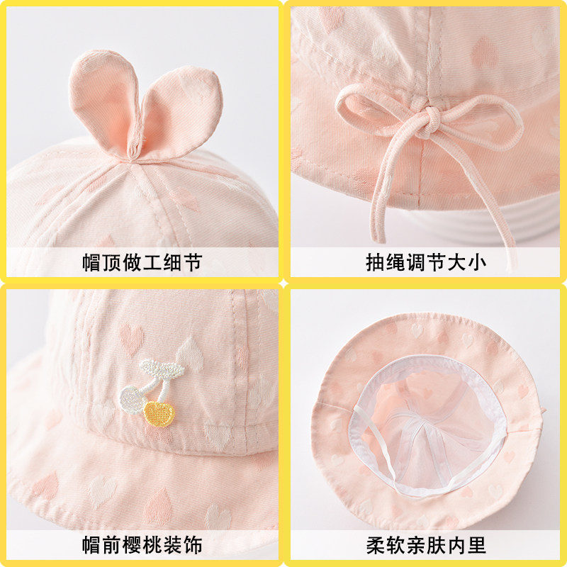 婴儿帽子夏款 可调节防晒盆帽 遮阳渔夫帽男女宝宝太阳帽女孩春秋款