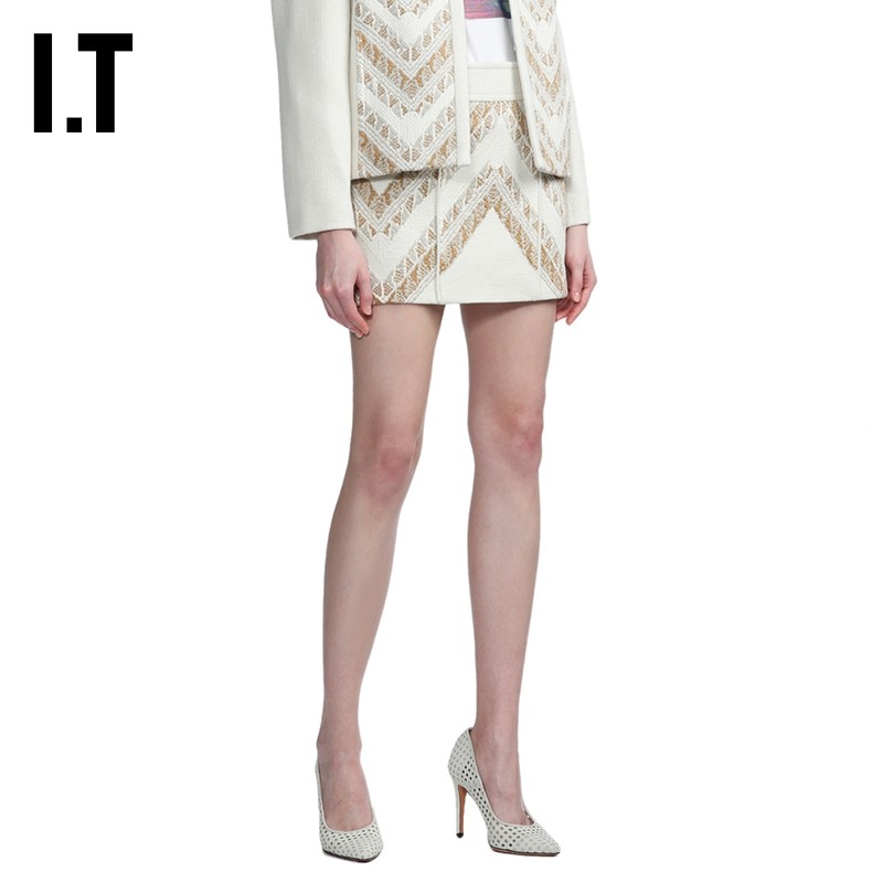 时尚 半身裙新品 通勤折线图案刺绣提花合身短裙ALISKAXI IRO女装