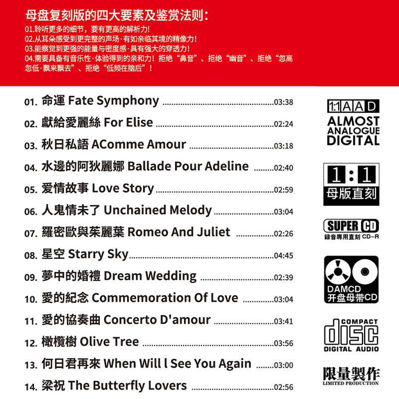 正版 理查德克莱德曼cd钢琴曲母盘直刻车载cd碟发烧试音无损高音质