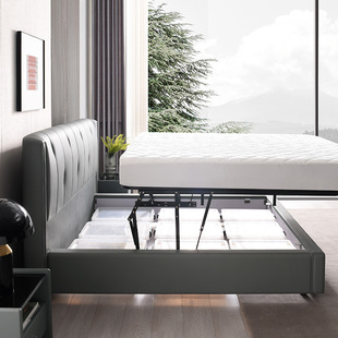 慕思轻奢现代简约真皮床高箱储物床主卧收纳婚床1.8m功能大床慕斯