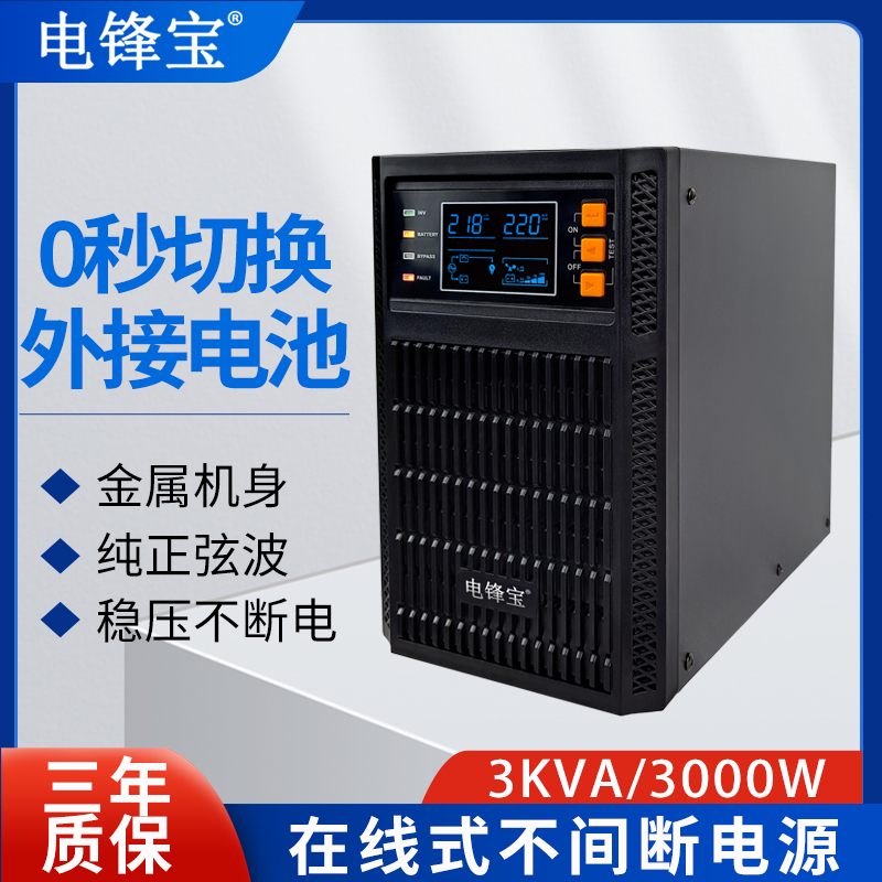 电锋宝在线式 3KWUPS不间断电源应急6小时3KVA外接8小时电池220V