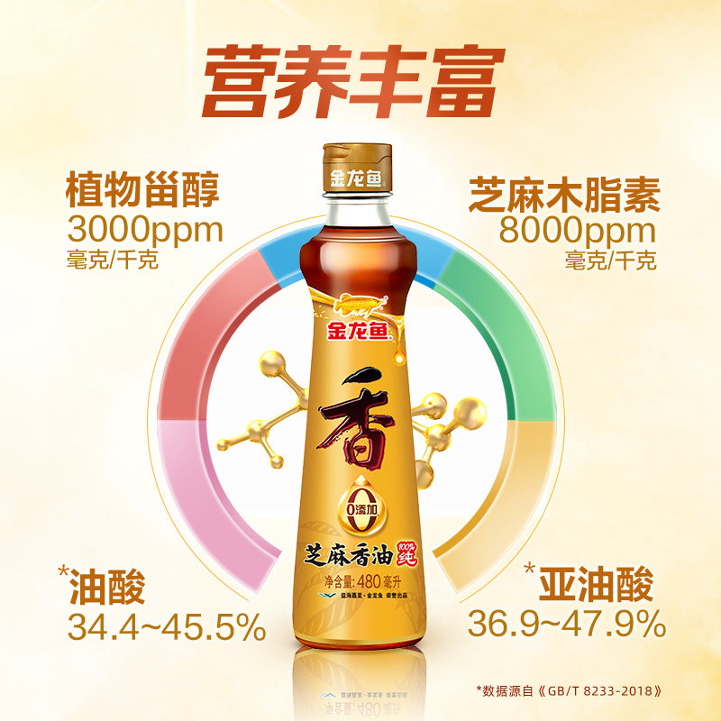 金龙鱼调料油纯芝麻油香油480ml火锅食用油大规格厨房 K姐推荐