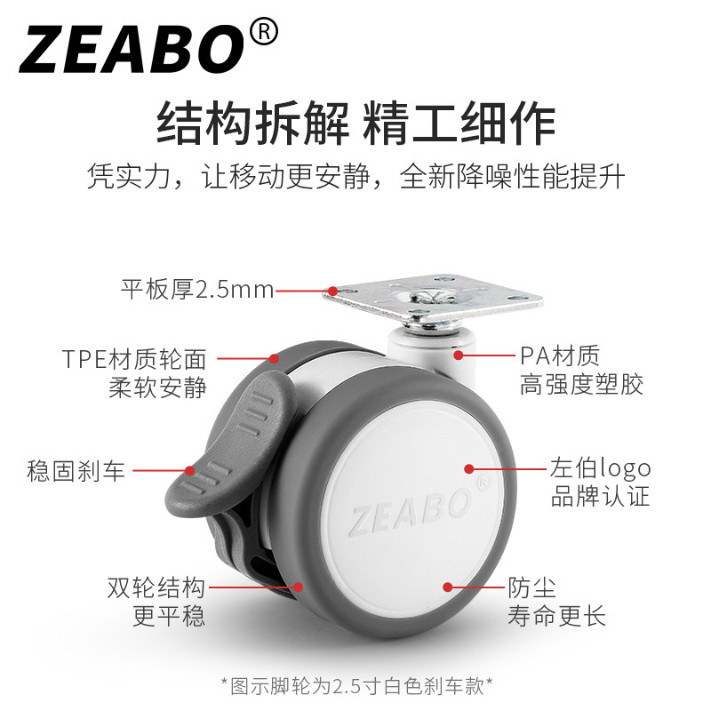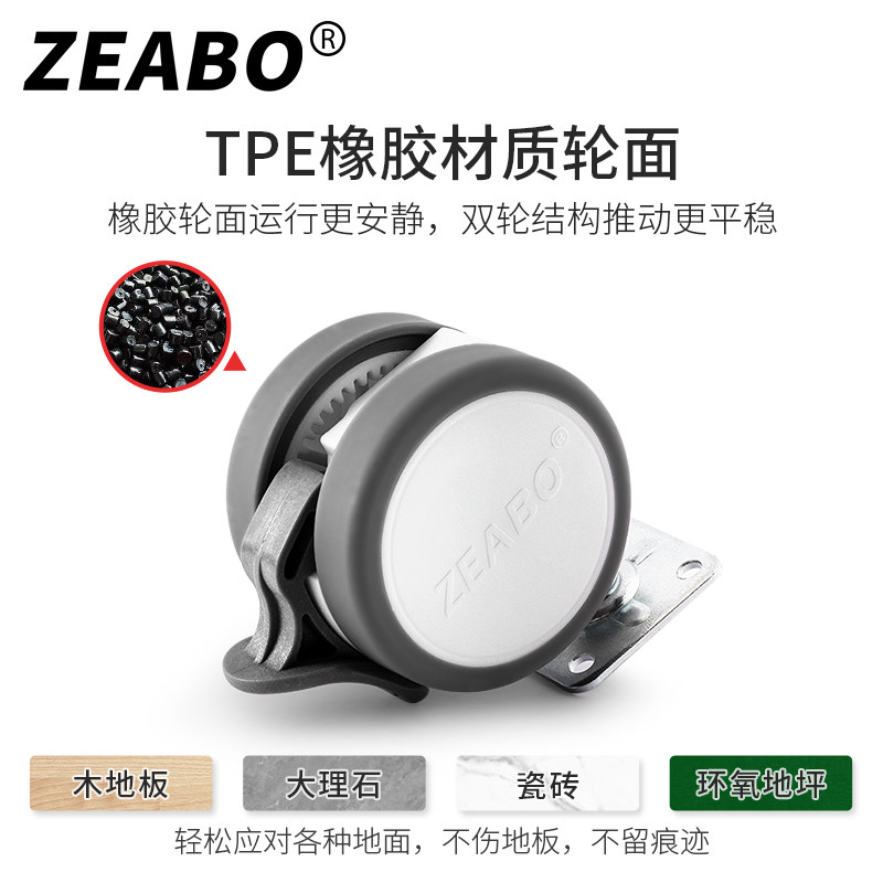 TPE静音1寸万向轮1.25寸平底万向轮1.5寸脚轮2寸橡胶家具轮推拉轮