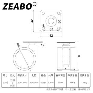 重型万向轮轮静音脚轮转向轮滑轮定向承重轮带刹车小轮子移动滚轮