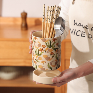 法式 筷子收纳盒高档家用厨房台面筷子筒沥水防霉陶瓷筷子笼筷子桶