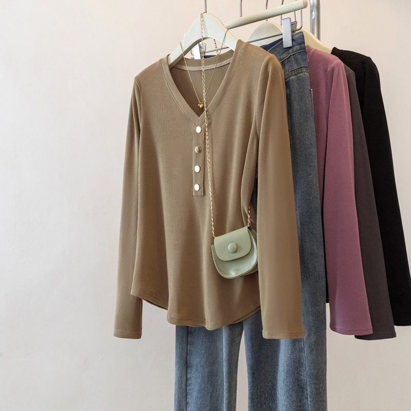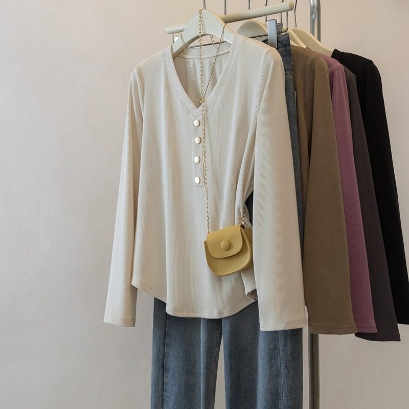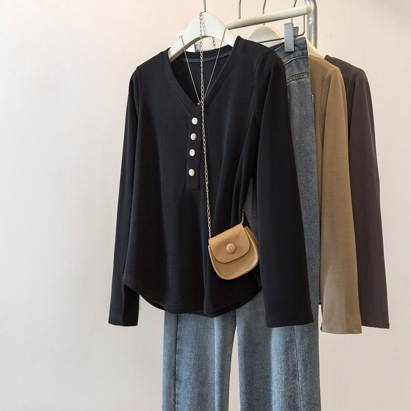 T恤女秋冬显瘦上衣遮肚藏肉内搭打底衫 胖mmV领长袖 女装 300斤大码