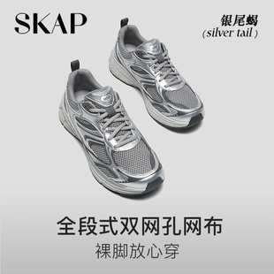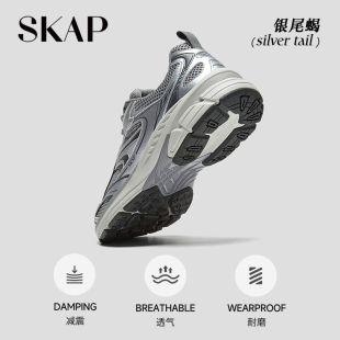 运动复古跑女休闲鞋 SKAP银尾蝎男女同款 圣伽步2026银色厚底老爹鞋