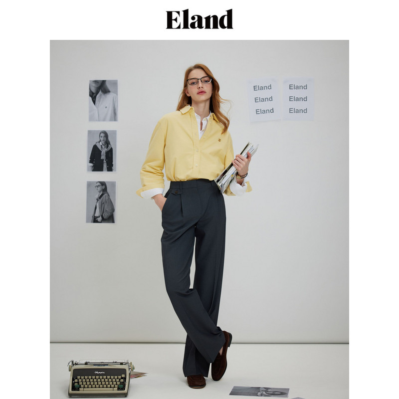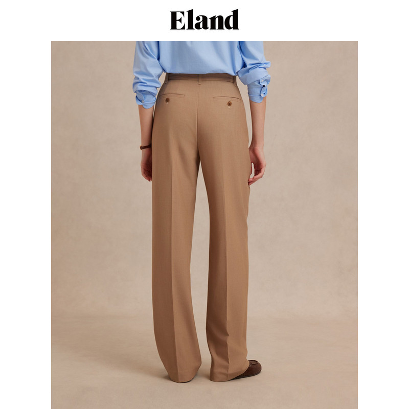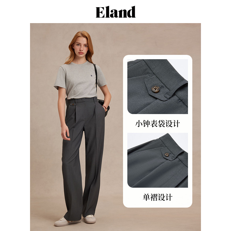 女单褶阔腿显瘦通勤直筒裤 Eland衣恋休闲裤 春季 醋酯+莱赛尔