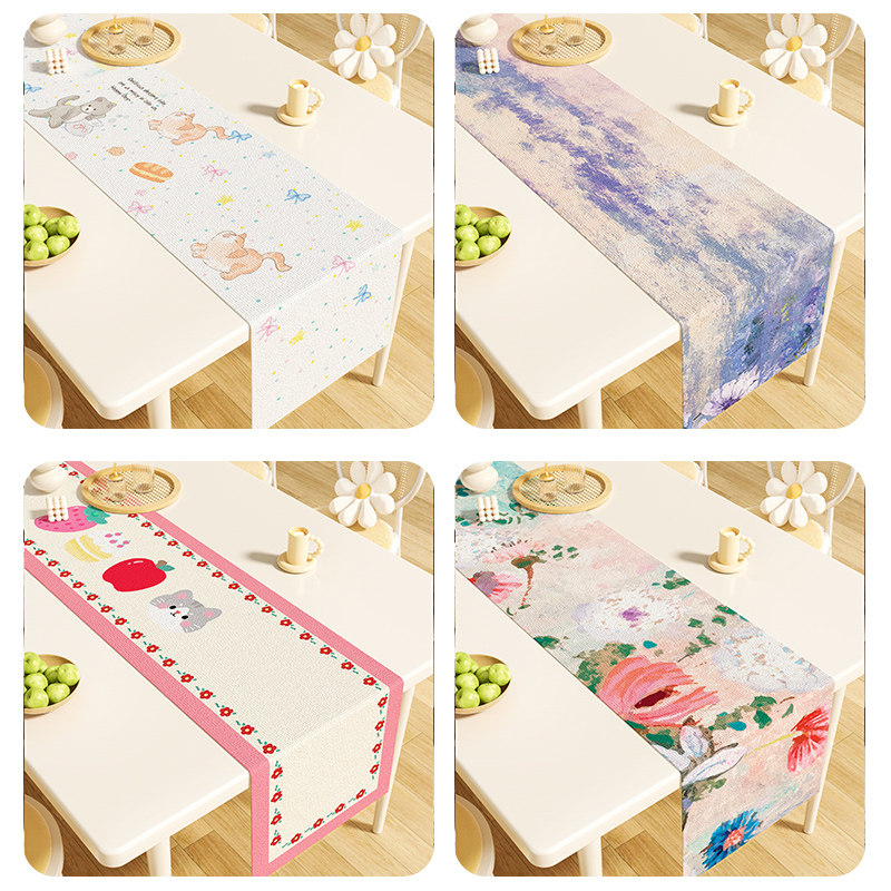 油画风餐桌茶几桌旗餐边柜装 饰防尘布餐边柜垫长条布艺桌布桌垫