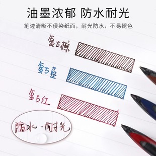 得力按动笔中性笔签字笔黑色0.5mm按动水笔红笔学生用大容量按压