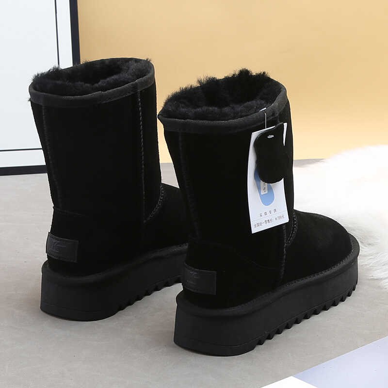 全羊毛厚底雪地靴女中筒2025年冬季 皮毛一体防滑东北加绒保暖棉鞋