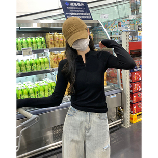 外出产后喂奶打底衫 T恤辣妈款 拉链鱼骨德绒长袖 哺乳上衣秋冬大码