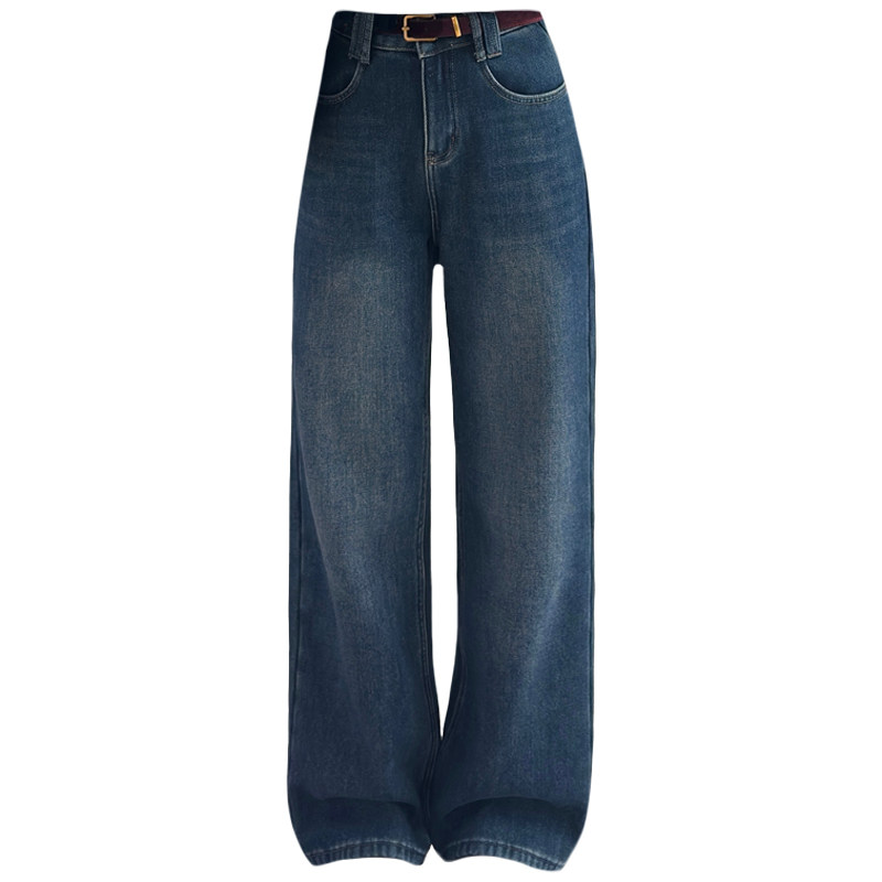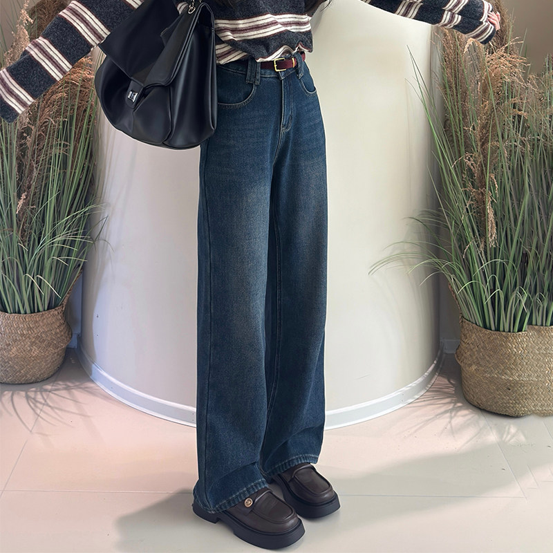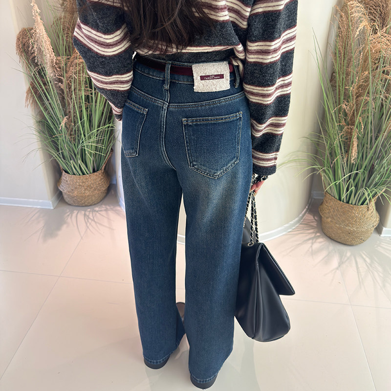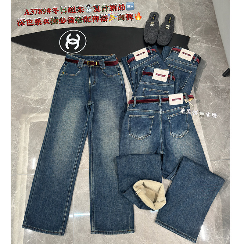 牛仔直筒阔腿裤 2025冬新款 Jeans阿凡牛A3789复合厚绒保暖宽松窄版
