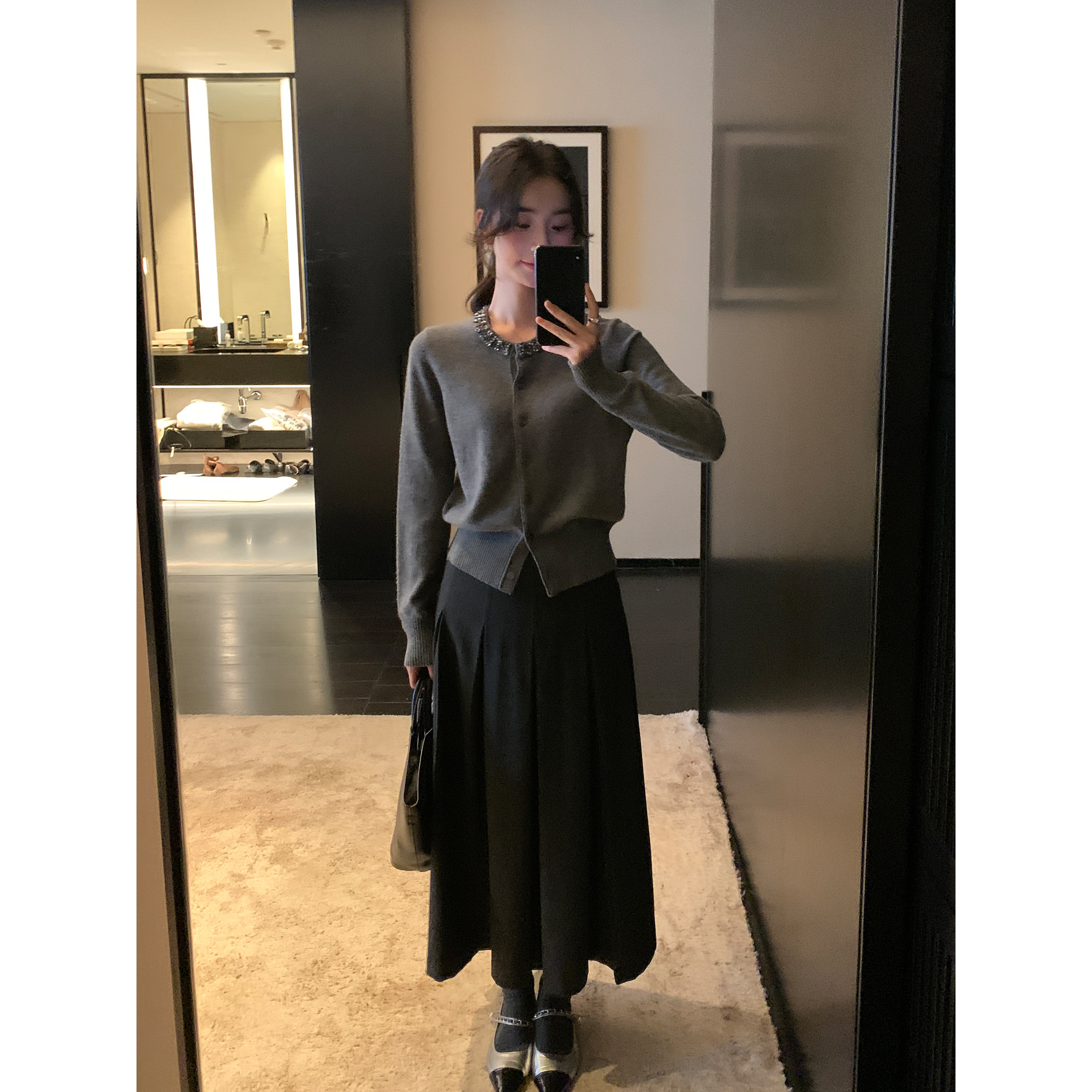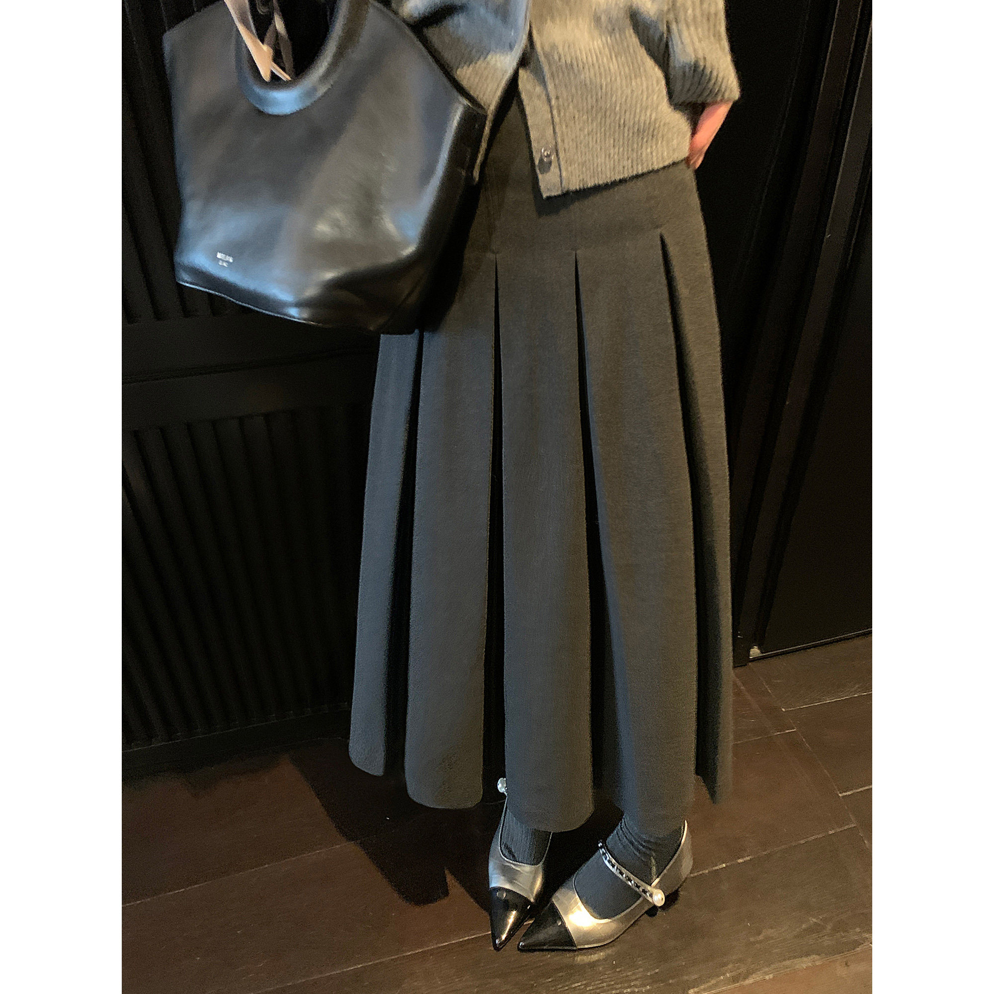 加厚高腰设计显瘦宽松半身裙裤 新款 2025年秋冬季 灰色百搭毛呢裙裤