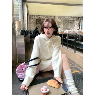 COLDSTONE 海妖金扣软糯慵懒连帽毛衣柔软亲肤秋冬氛围感宽松外套
